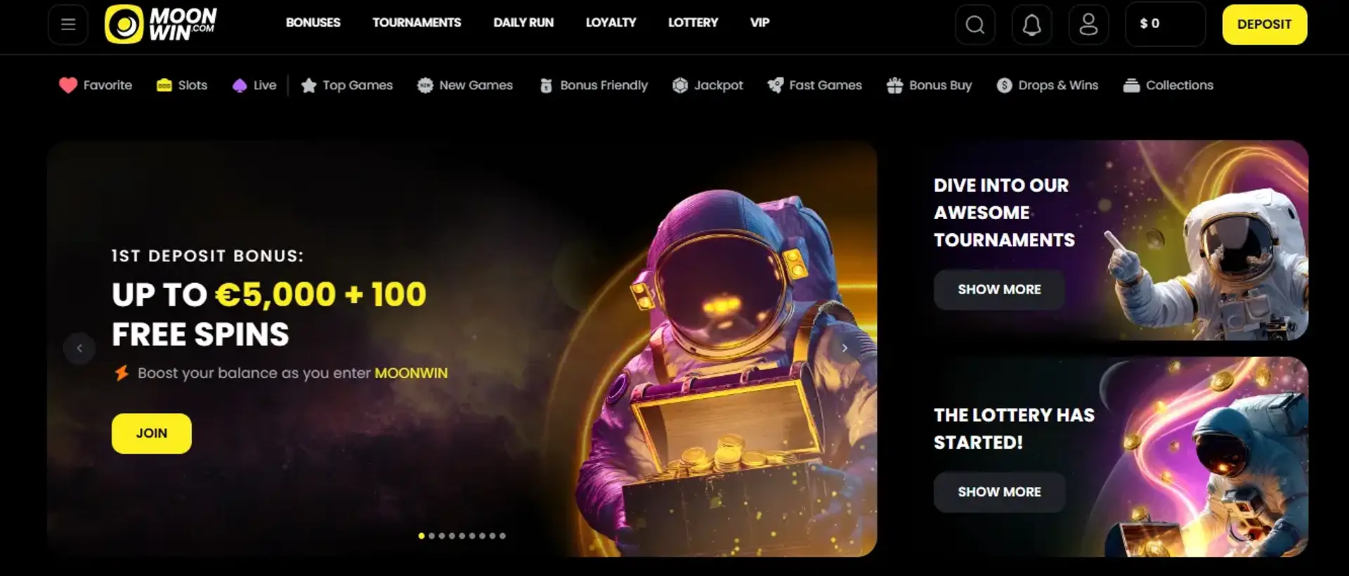 The moonwin welcome bonus introduces new users to the platform through a combined package of matched funds and moonwin free spins. The number of spins and eligible slot titles may differ by region, but all details are displayed on the Promotions page.